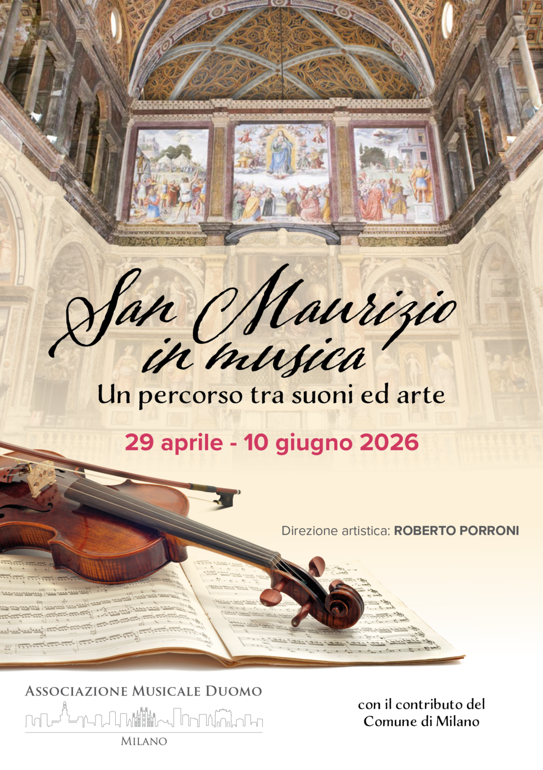 Nel cuore di Milano, tra gli affreschi senza tempo della Chiesa di San Maurizio al Monastero Maggiore – autentica “Cappella Sistina” della città – torna San Maurizio in Musica 2026, rassegna diretta da Roberto Porroni che invita il pubblico a un affascinante percorso tra suoni, epoche e culture. Dal 29 aprile al 10 giugno, sette appuntamenti intrecciano capolavori del repertorio classico e rarità da riscoprire, accostando il Barocco europeo alla musica contemporanea, le suggestioni iberiche al teatro da camera, fino ai dialoghi tra jazz, tango e tradizione colta. Accanto a interpreti di rilievo internazionale, programmi originali guidano l’ascoltatore attraverso temi universali come l’amore, il viaggio e l’incontro tra culture, culminando in esperienze musicali che spaziano dall’Europa centro-orientale alla grande tradizione russa e americana. Un cartellone pensato per emozionare e sorprendere, dove la bellezza dei luoghi e la qualità artistica si fondono in un’esperienza unica.